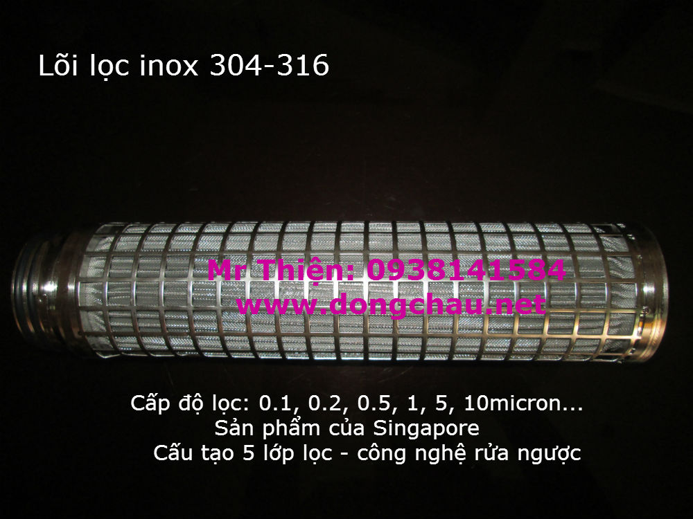 Lõi lọc inox: cấp độ 0.1 micron, 0.2micron đến 5micron, 10 micron, 25micron...(tùy yêu cầu).