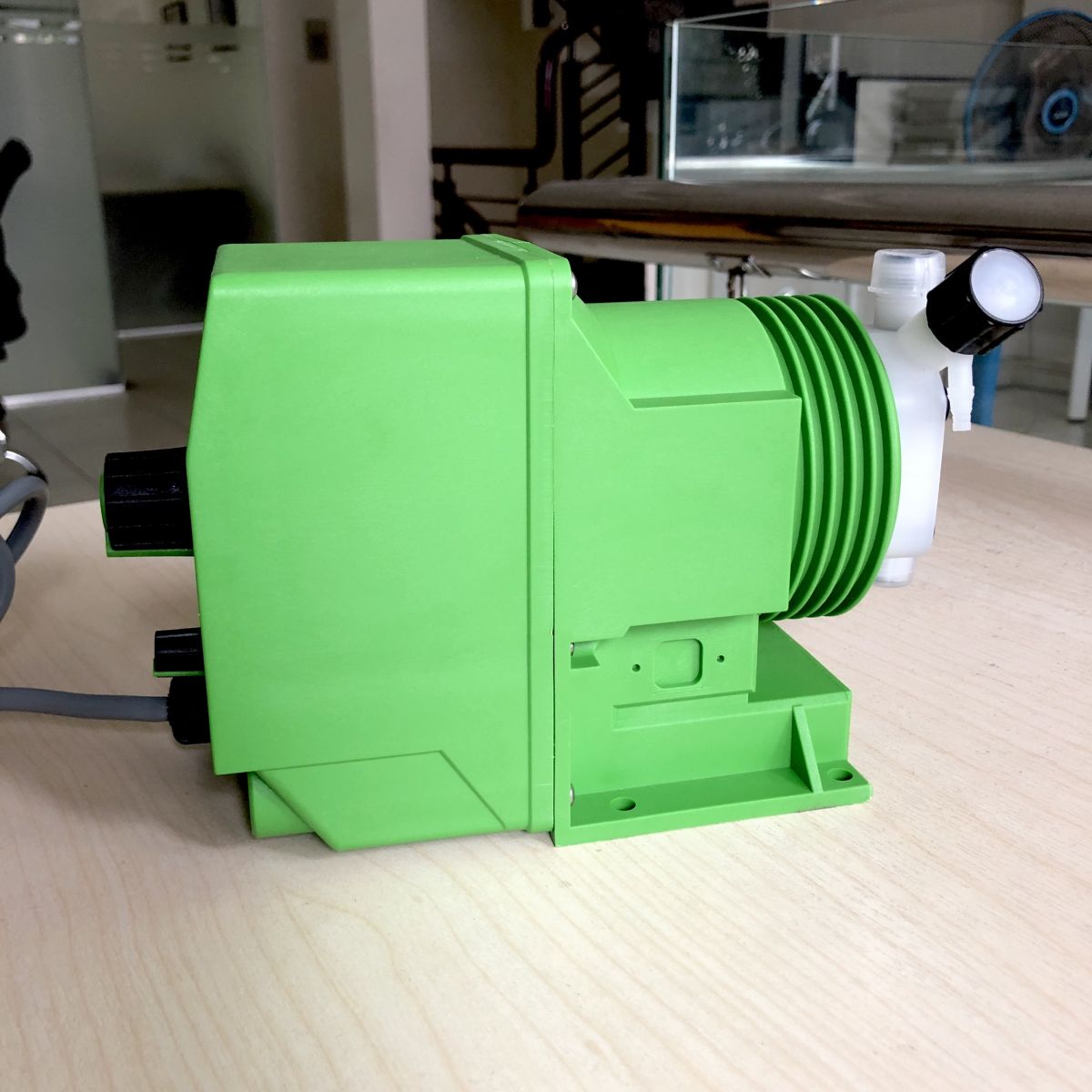 - Bơm được nhiều loại hóa chất vì chất liệu đầu bơm bằng chất liệu PVDF, màng bơm bằng chất liệu PTFE, được sản xuất nguyên một khối.