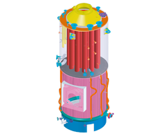 The radiation heat transfer is performed in the membrane wall furnace of cylindrical design, whilst the convection heat transfer is carried out through special pin elements.