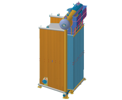 The FMB-VM is a water tube type steam boiler for medium power range. The radiation heat transfer is performed in the membrane wall furnace of cylindrical design, whilst the convection heat transfer is carried out through special pin elements / rifled plain smoke tubes. The convection part can be equipped with rifled plain smoke tubes on request up to 16 t/h steam capacity.