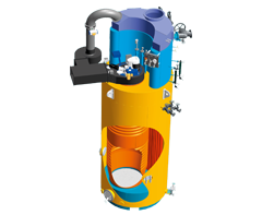 The FMB-VF-LONOX is a vertical two-pass fired boiler. Heat transfer is performed through the corrugated or plain flame tube furnace and a number of plain smoke tubes. The new design of the flame tube entrance for burner mounting allows a minimum of burner refractory which significantly enhances operational reliability.