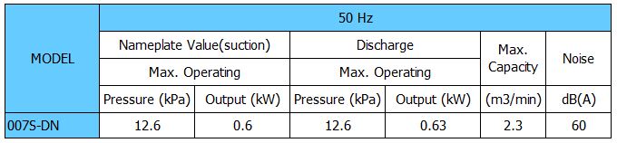 Bảng thông số kỹ thuật máy thổi khí 1 pha VB-004s-DN: