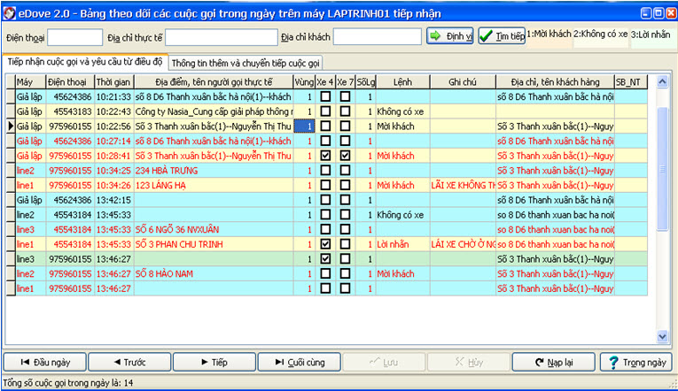 + Cho phép nhập thông tin tức thời yêu cầu gọi xe, đặt xe của khách hàng.