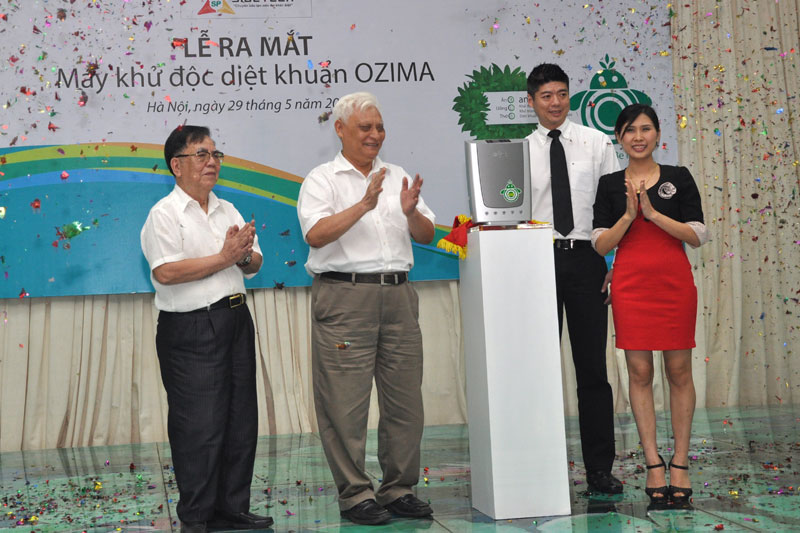 Ông Nguyễn Ngọc Sinh chủ tịch Hội bảo vệ thiên nhiên và môi trường Việt Nam, GS.TS Vũ Hoan, Chủ tịch Liên hiệp các Hội KHKT Hà Nội, Bà Nguyễn Thị Thu Hà - Tổng giám đốc Công ty Sinh Phú và Ông Ivan Lim - Giám đốc phát triển kinh doanh đại diện Hãng AMIAD (ISRAEL) ra mắt sản phẩm mới.