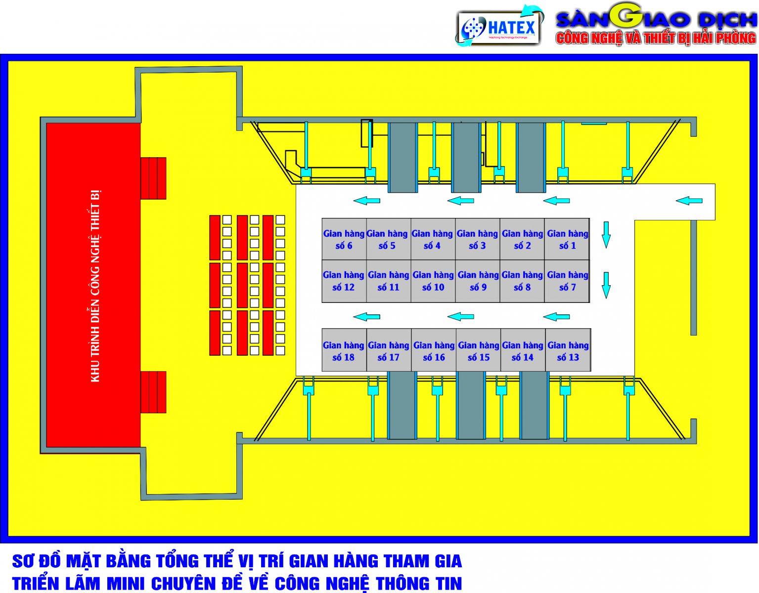 400 m2, gồm 18 gian hàng.Dự kiến từ 10 - 15 đơn vị tham gia, dự kiến bố trí như sau: