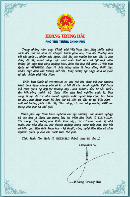 Thư mời của Phó thủ tướng chính phủ và